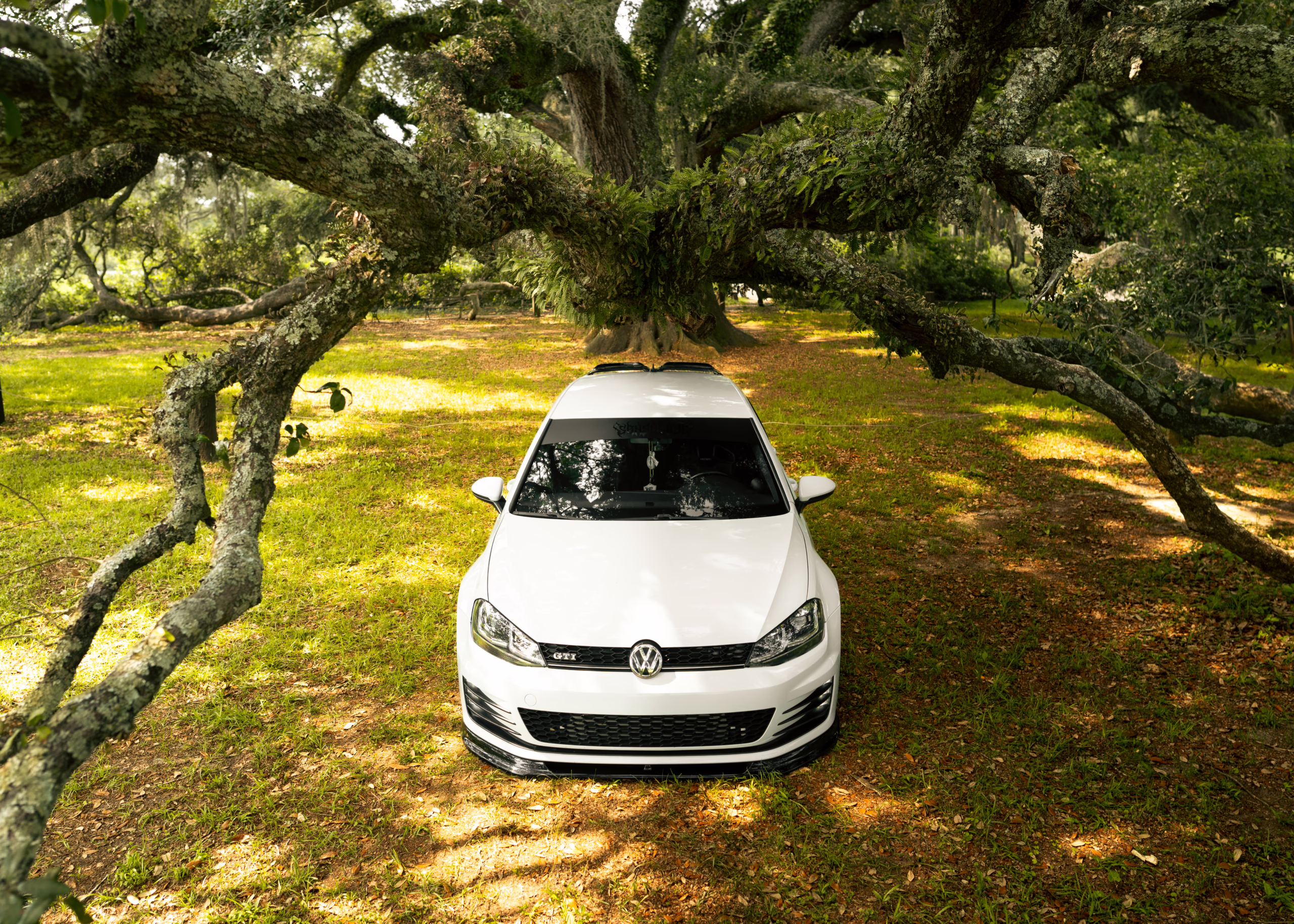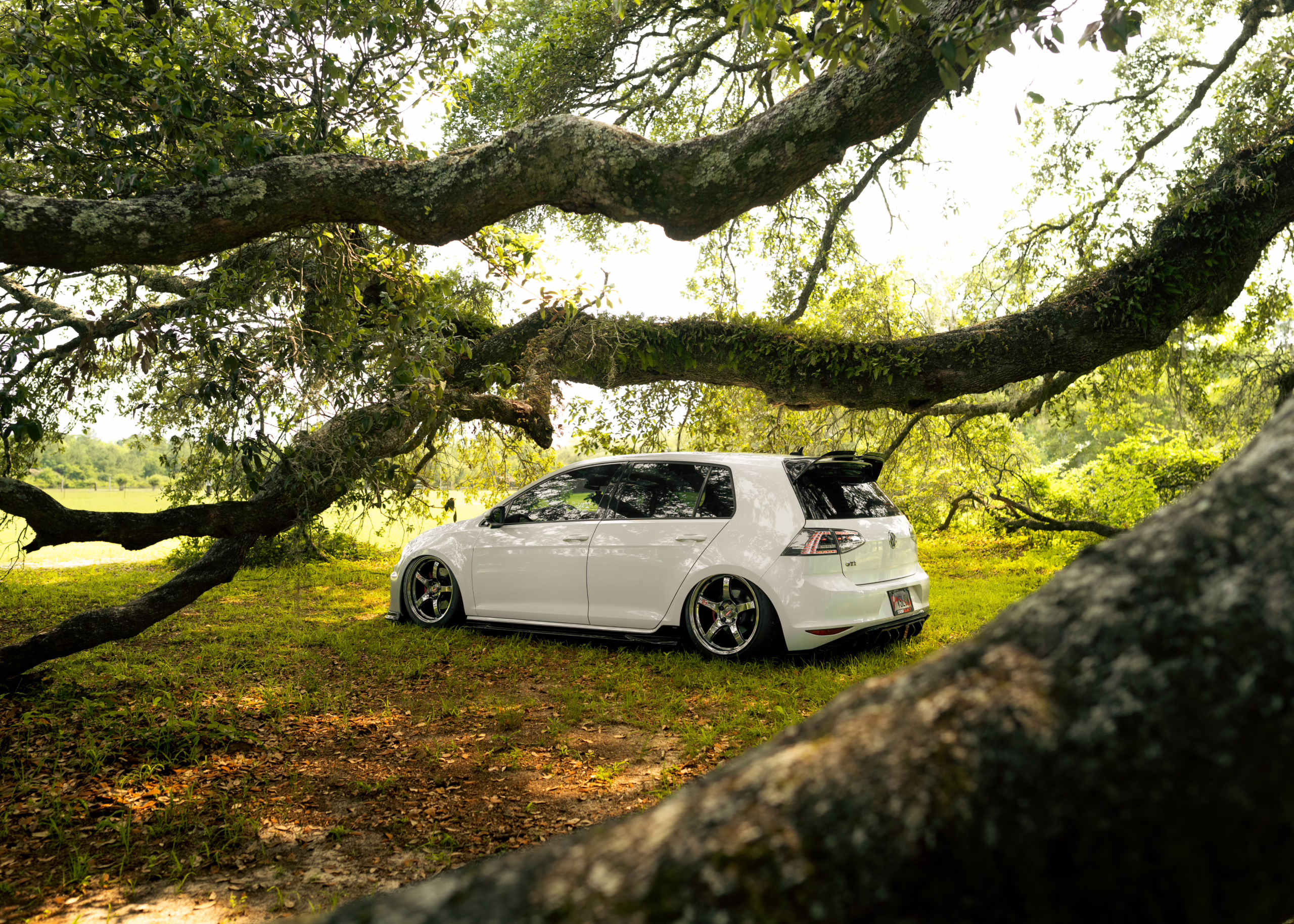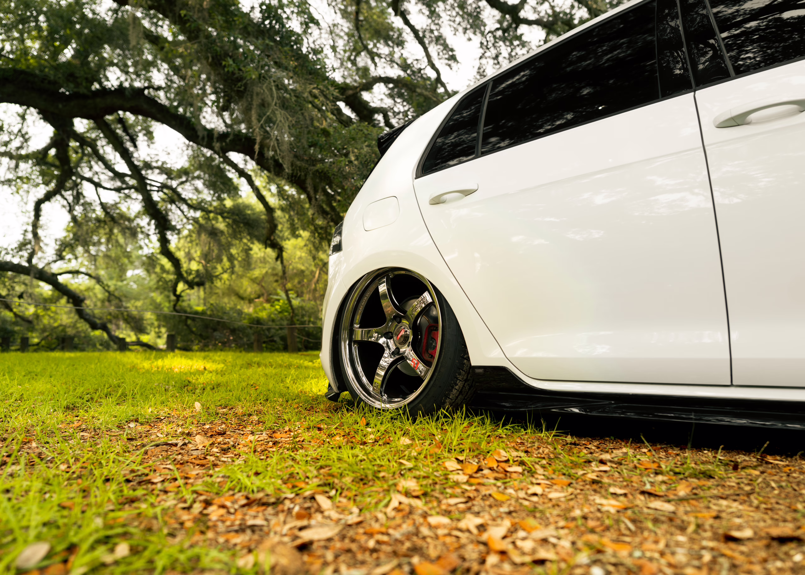 The GTI has also undergone an exterior makeover. Up front, Chris added an ECS front lip as well as BMP Illuminator headlights and sequential mirror turn signals. On the sides he added ZAERO side skirts. The rear includes an Oettinger spoiler, K2 Industries clear taillights, and a K2 Industries rear diffuser. Now, most importantly, Chris’s GTI suspension setup consists of Raceland bags, with Airlift 3p air management. It is sitting on 18-inch Rays Gram Lights 57CR wheels in black chrome.
